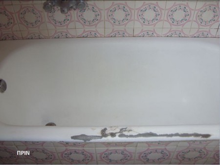 Επισκευή μπανιέρας πλακιδίων τοίχου και ειδών υγιεινής. με την μέθοδο της επισμάλτωσης. Αλλαγές χρωμάτων.